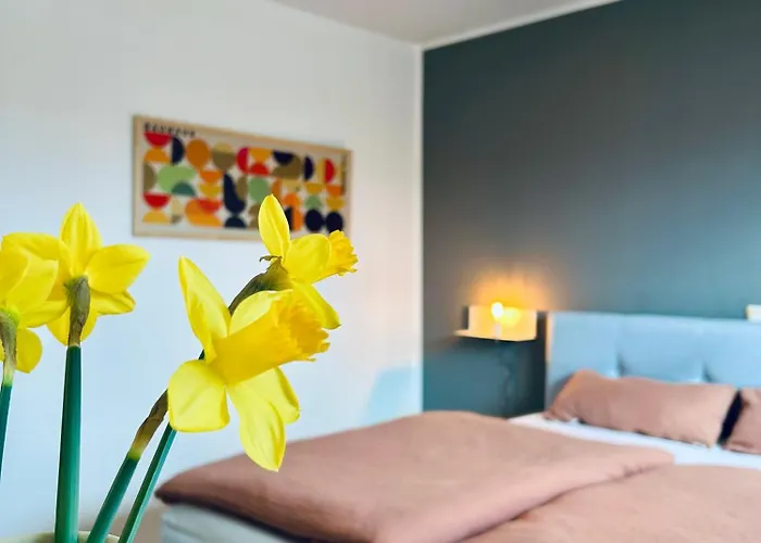 O Ahrtal 2-Zimmer-Ferienwohnung Falkenhorst Sinzig inclui terraço e está localizado a 4.3 km da Ponte de Remagen. O apartamento oferece comodidades modernas, como Wi-Fi e itens essenciais, como o parque de estacionamento para quem viaja de carro.